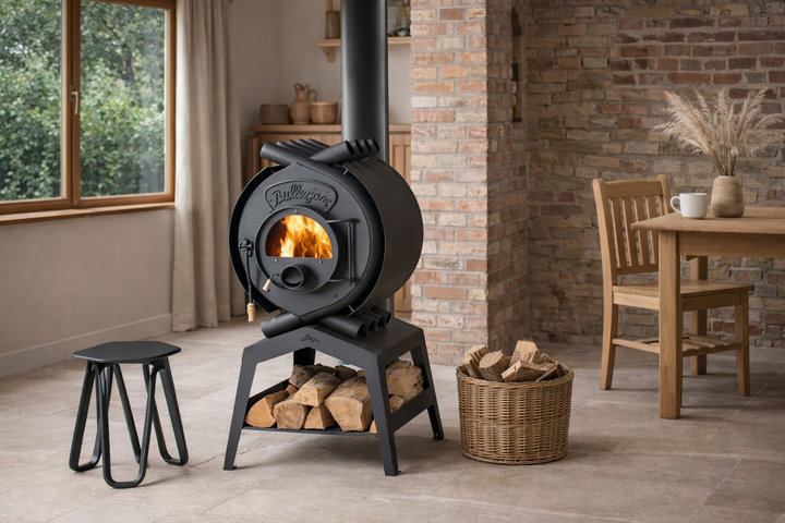 Идеально для дачи или гостевого домика: приехал в пятницу вечером, растопил — и до утра тепло. Одной закладки хватает на 8–12 часов. Но для большого дома не подойдёт: эффективно греет только одно помещение площадью до 60–80 м².