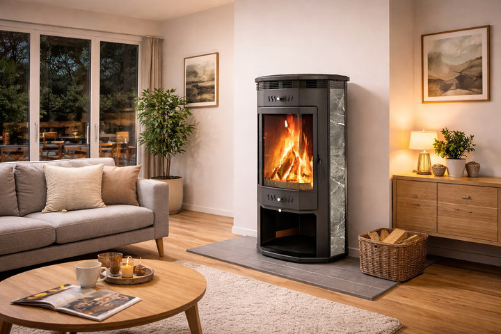 Классика, которая не подводит. Закинул дрова утром и вечером — и в доме тепло. Современные модели уже не те чугунные «буржуйки» прошлого века: у них есть регулировка тяги, камера дожига дыма (меньше сажи и выше КПД) и безопасный корпус, который не обжигает руки.
