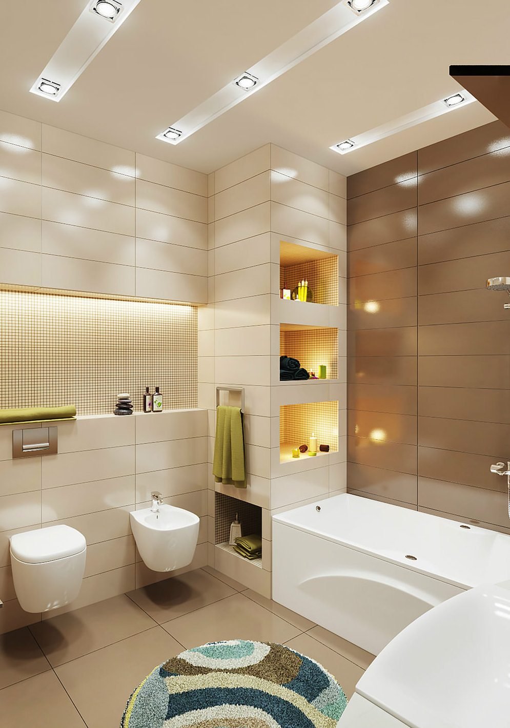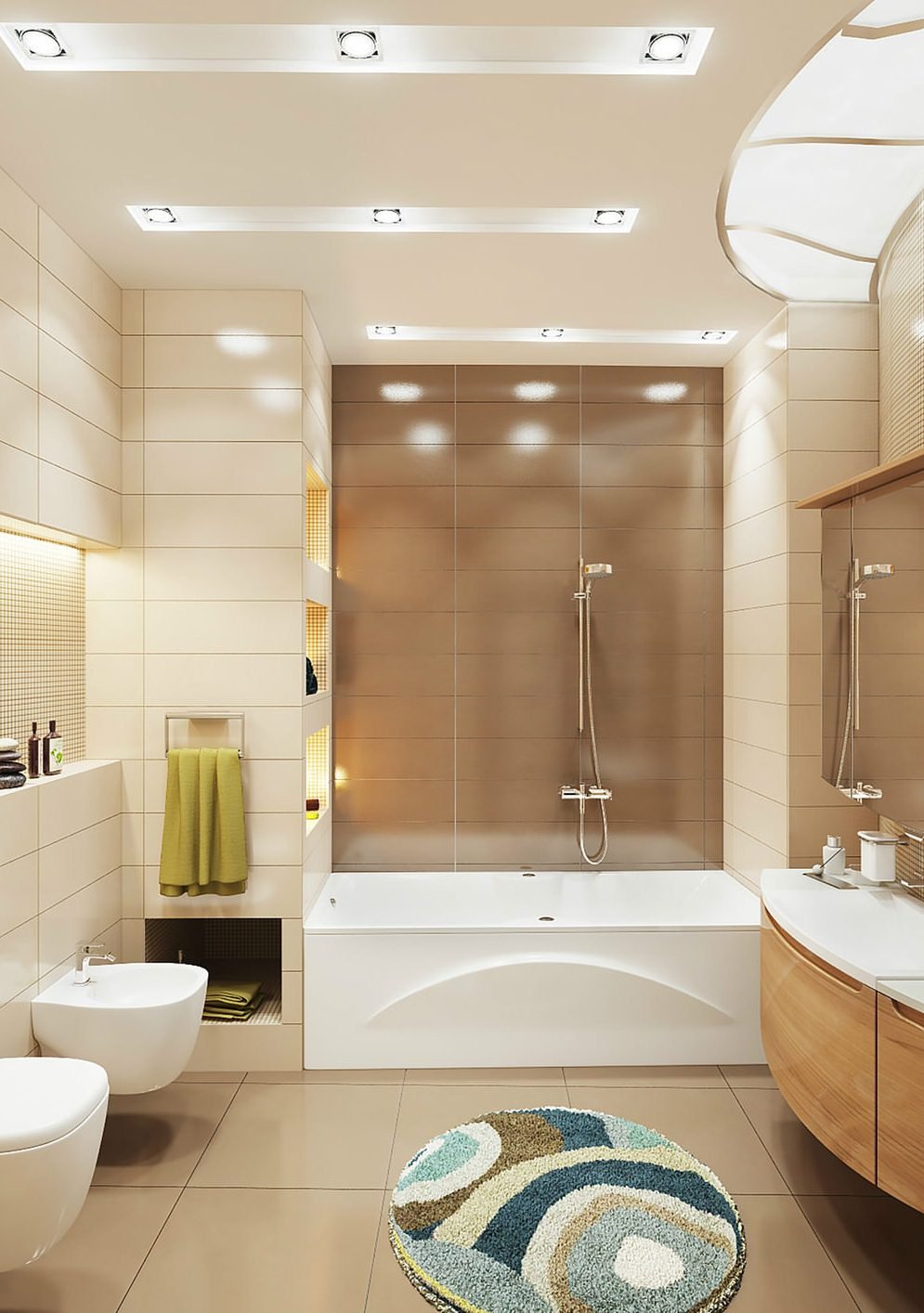 Дизайн ванной комнаты в бежево-коричневых тонах