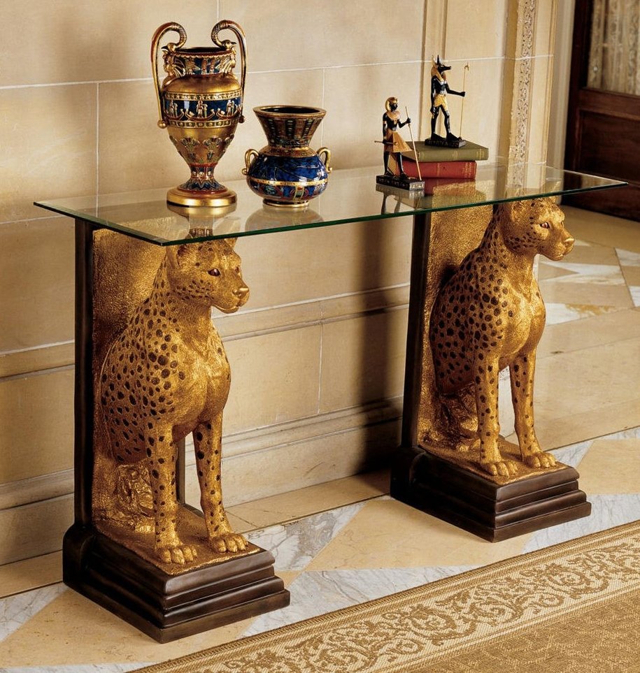 Интерьер в египетском стиле привлекает тех, кто ценит монументальность и лаконичность геометрических форм в древнеегипетском искусстве, и тех, кто желает создать в своём интерьере подобие роскошных покоев Клеопатры, отличавшихся, согласно эпическим источникам, богатством, особой торжественностью и величественностью.